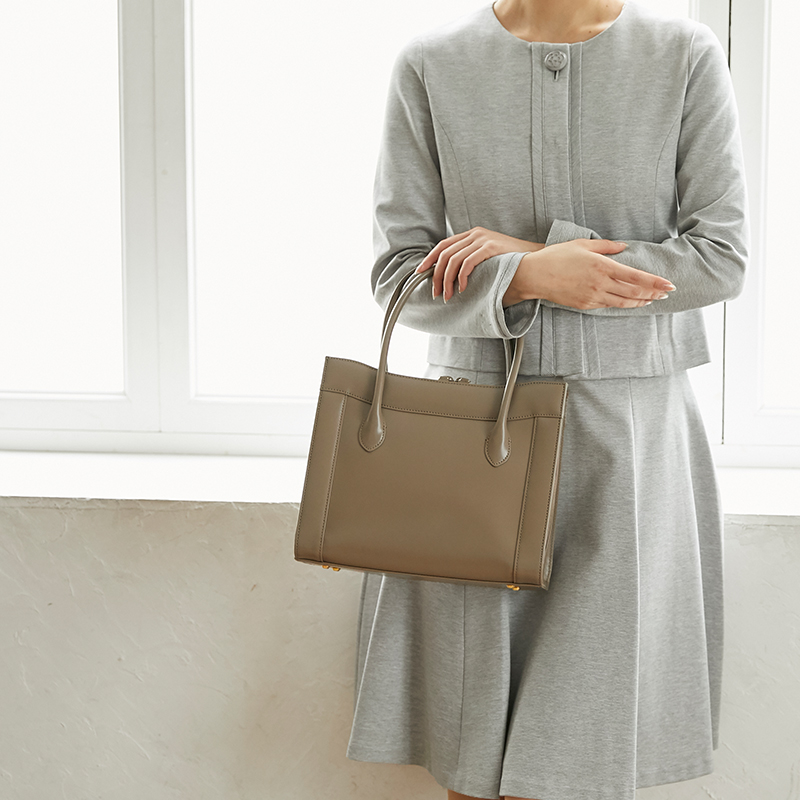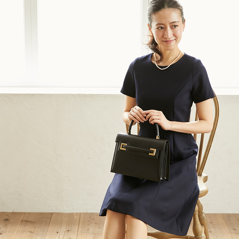 入学式のようなハレの日だからと言って、爬虫類系やキラキラとスパンコールが付いたバッグは向いていません。入学式の場合でも、できるだけシンプルな革製か布製の無地のバッグがお勧めです。また、入学式などでは入学に関する書類や、スリッパ持参を求められる場合もあります。そのような場合に備えて、サブバッグを一緒にお持ちいただくもおすすめです。その際には、カジュアルなものは控え、バッグと同系色をお選びいただくとエレガントにスッキリとまとまります。HAMANOでもA4サイズも収納可能なバッグから、小さくとも収納力のあるミニバッグまで取り揃えています。