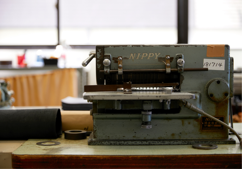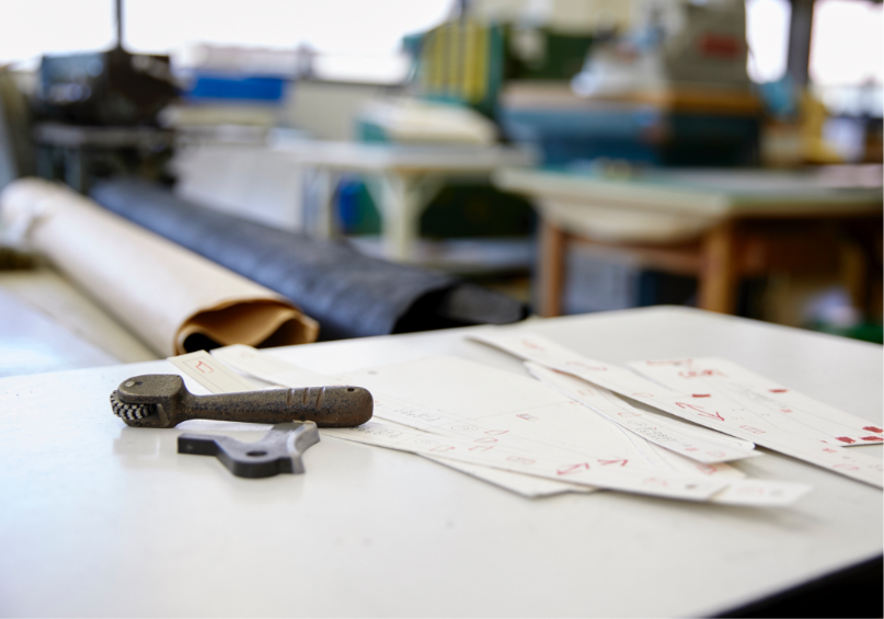 熟練の職人のそばには、必ず職人ごとに改良された工具がおいてあります。それぞれの癖や使い勝手を考慮し少しずつ改良されていく工具は、職人にとってかけがえのない相棒へ育っていきます。使い込むほど味わいが出る革のように、使い込まれた工具も味わい深い表情を見せてくれます。