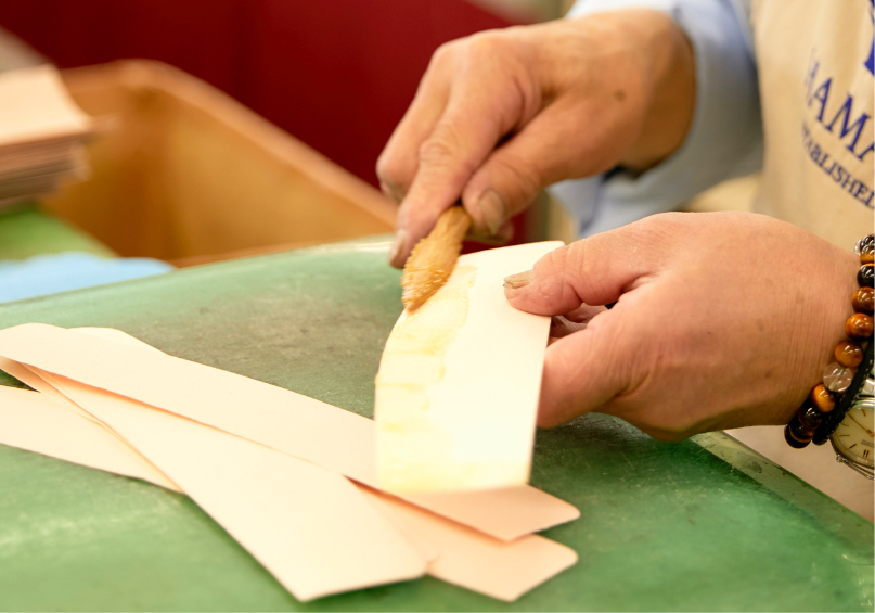 湿気が少なく革に適した場所を探し抜き、昭和42年(1967年)、軽井沢工場は開設されました。開設にあたって、3代目の濱野敬之は素人の職人を集めました。その理由は、職人側も濱野のバッグを使う相手側の気持ちに立ち、もうひと手間をかける親切心を期待していたからです。「手でつくるな、ハートでつくれ」という彼の言葉がその姿勢を表しています。
