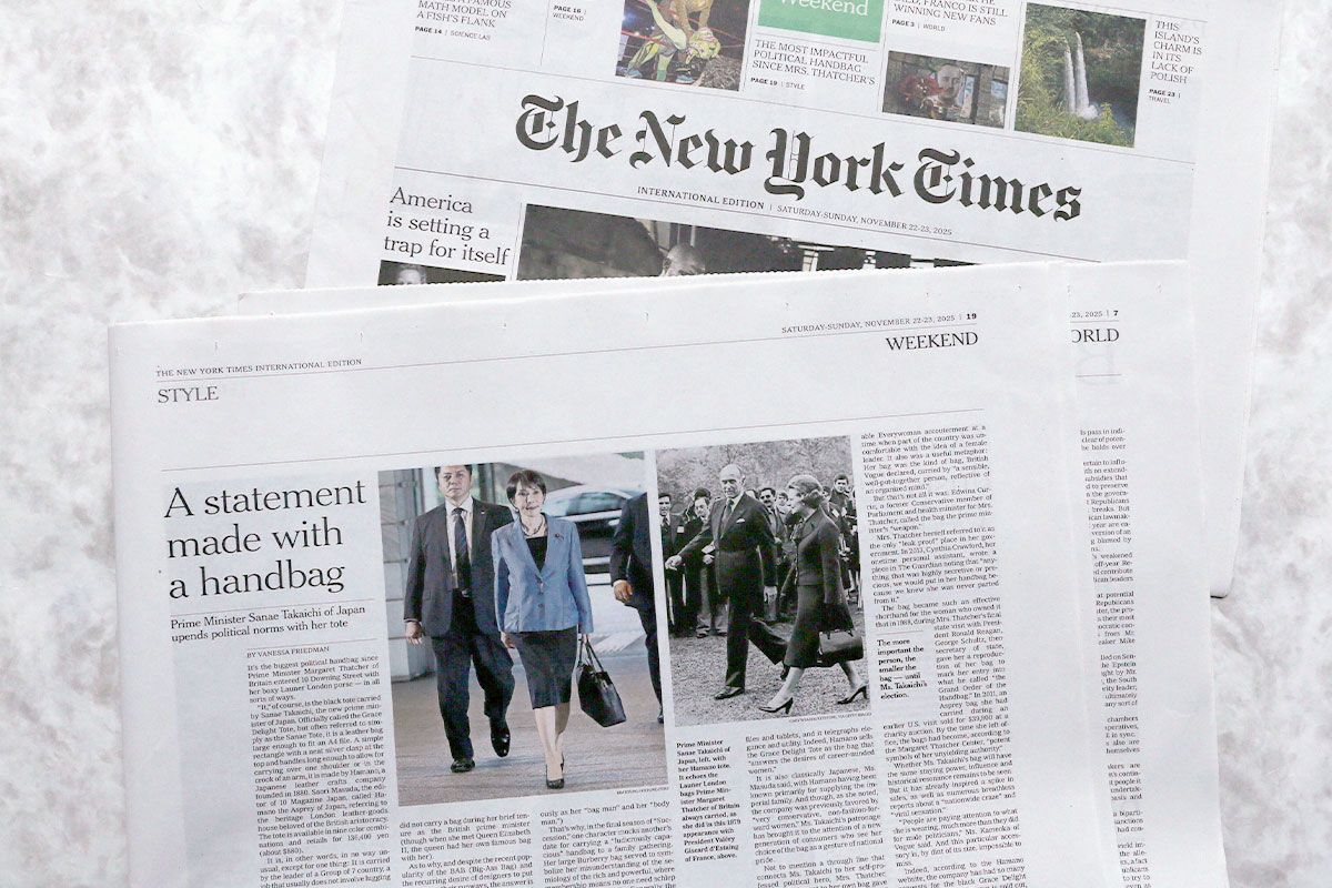ニューヨークタイムズ紙に、第104代首相が濱野皮革工藝の「グレースディライトトート」をご自身でお持ちになっている姿が掲載されました。