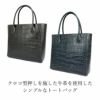クロコ型押しの高級素材とシンプルなかたちのトートバッグが融合しました