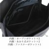 | 仕様 | 内側:オープンポケット×2 内側:あおり式ポケット×2 内側:ファスナーポケット×1 外側:ファスナーポケット×1 外側:底鋲×5 |