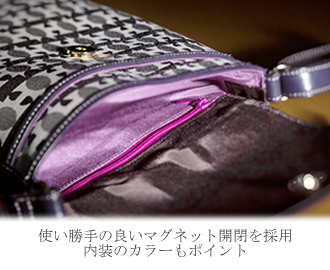 バッグの開閉時に ふわっと見える内装のカラーは、