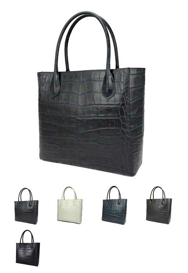 クロコ型押しの高級素材とシンプルなかたちのトートバッグが融合しました