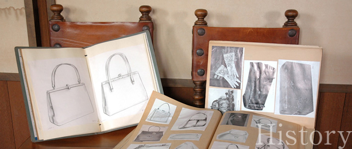 江戸時代、革製のつばや鞘を手がけていた濱野清太郎の技術を受け継いだ甥の伝吉が「濱野伝吉商店」の名で創業したのは明治13年(1880年)。ちょうど、長い鎖国の眠りから覚めた日本が、近代化に向かって走りはじめた時期でした。街ゆく人々の装いに西洋の風が吹き込んだ時代に、その変化を敏感に感じ取った二代目初男は、当時は大変珍しかったVOGUE誌など欧米のファッション誌を取り寄せたり、研修のために職人をフランスに派遣するなどして、徹底して世界のトレンドを研究しました。その結果、バッグといえば丈夫でがっちりした箱型という、それまでの常識を破る美しい曲線美を持つハンドバッグを世におくりだすこととなりました。