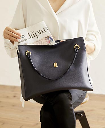 さらに、お弁当を持参する方や外回りの多い方は、収納力もしっかりチェックしたいポイント。マチ付き&自立式のビジネストートバッグなら、中身が見やすく取り出しやすく、パソコンの持ち運びも快適に。ビジネスの日常を気持ちよくサポートしてくれます。底鋲付きのデザインなら、置いたときの安定感が生まれ、バッグの美しさもキープ。働く女性の毎日をスマートに整えてくれる、頼れる機能がそろっています。