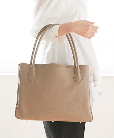 仕事でアクティブに飛び回る、そんな行動派の女性におすすめのトートバッグです。歴史あるグレースシリーズで最も人気のモデルで、デザイン性と機能性を兼ね備えた実力派。程よくエレガントで、程よくカジュアルなシルエットがこだわりです。